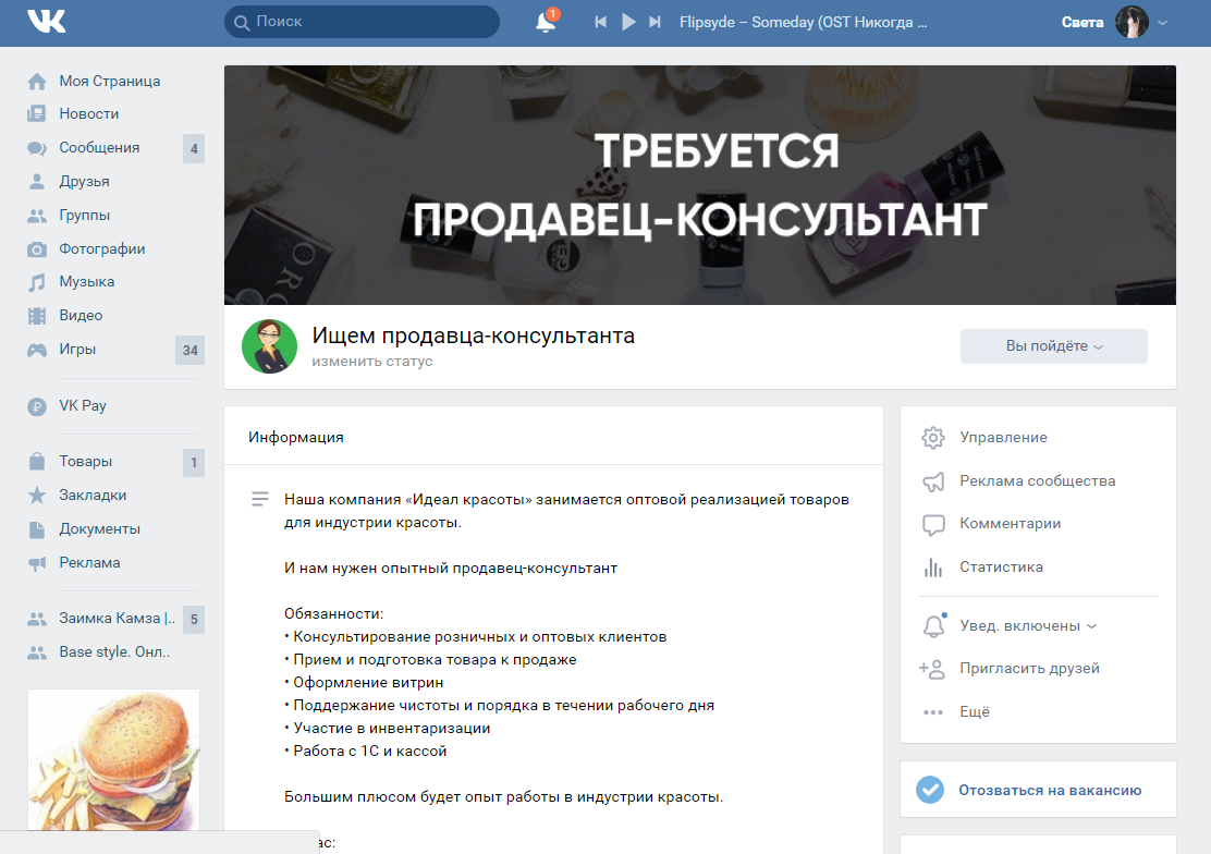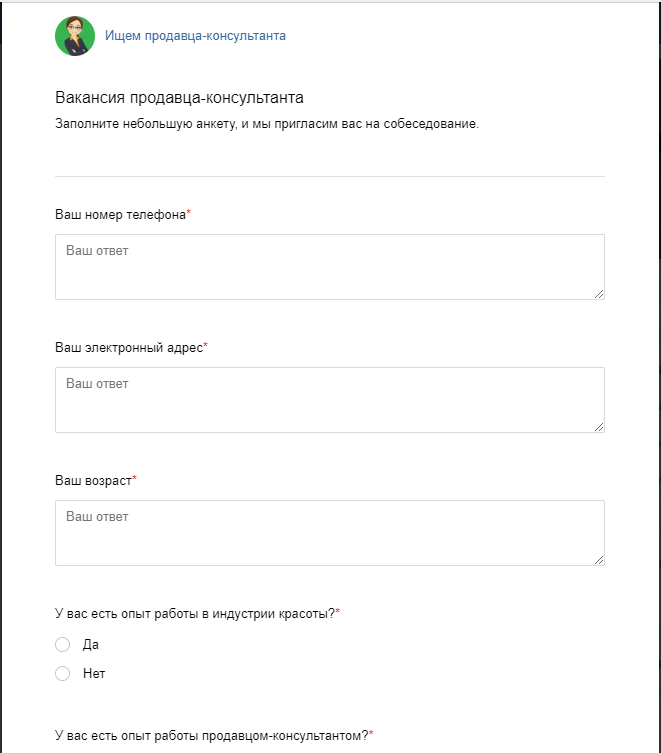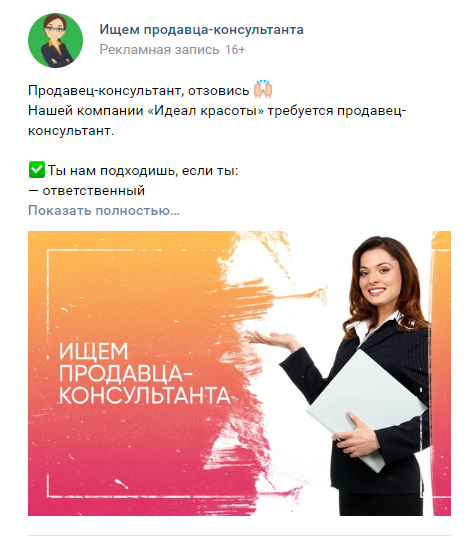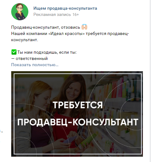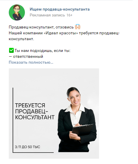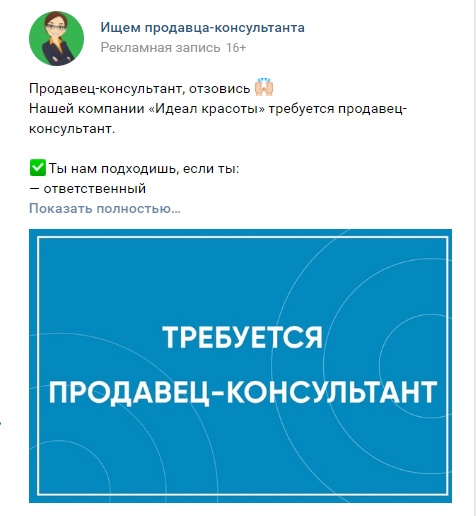 HR и SMM. Лиды на вакансию продавца-консультанта бьюти-материалов