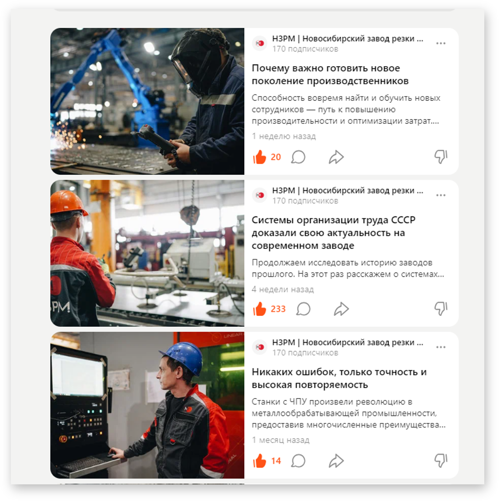 было 0 подписчиков, сейчас 156 (и это самая лояльная наша аудитория, готовая читать большие и сложные тексты). У нас есть опыт запуска и развития на площадке Яндекс.Дзен (и особенно в производственной тематике).